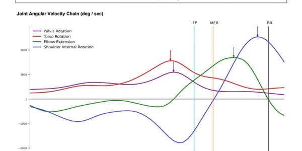 To the degrees per second, see an analysis of pelvis rotation, torso rotation, elbow extension and shoulder internal rotation.