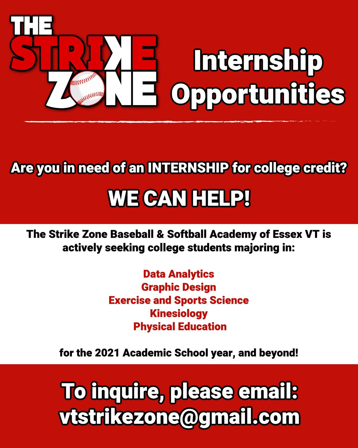 All you have to do is email vtstrikezone@gmail.com to inquire about the internships available here at The Strike Zone.